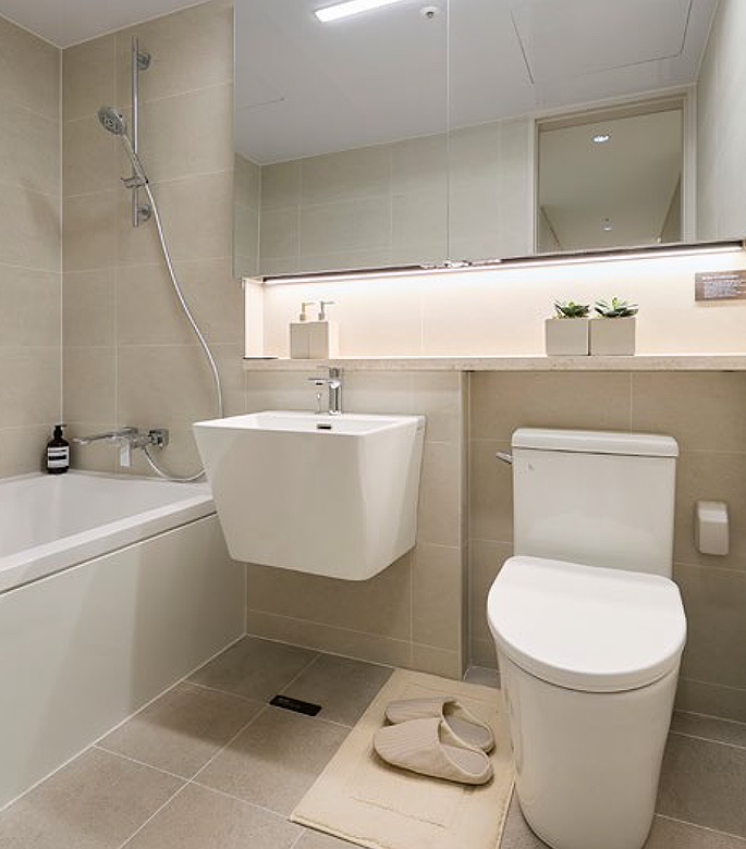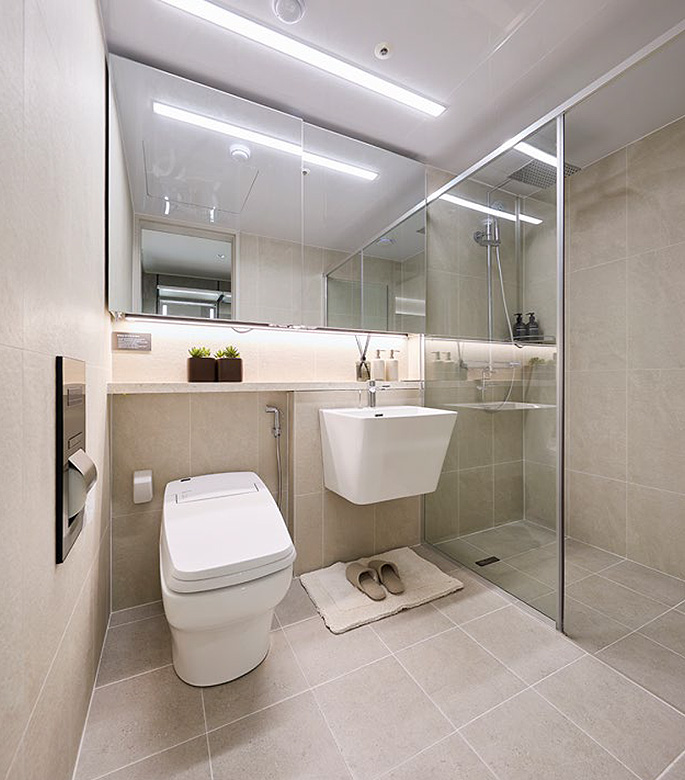 쾌적함으로 채운 욕실에서 하루의 피로를 씻어냅니다