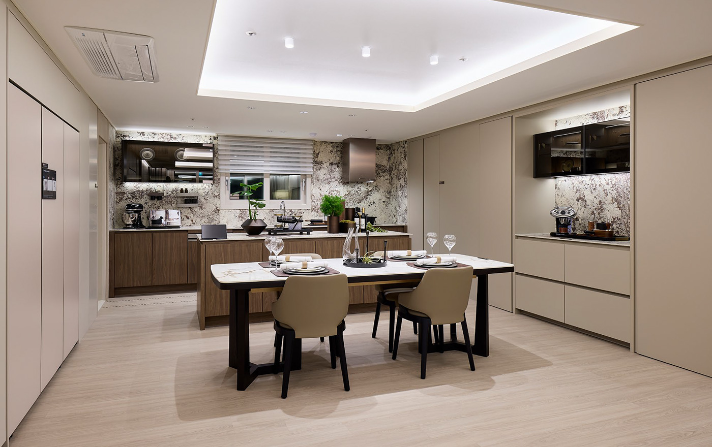 모던한 분위기의 주방에서 활기찬 대화가 시작됩니다